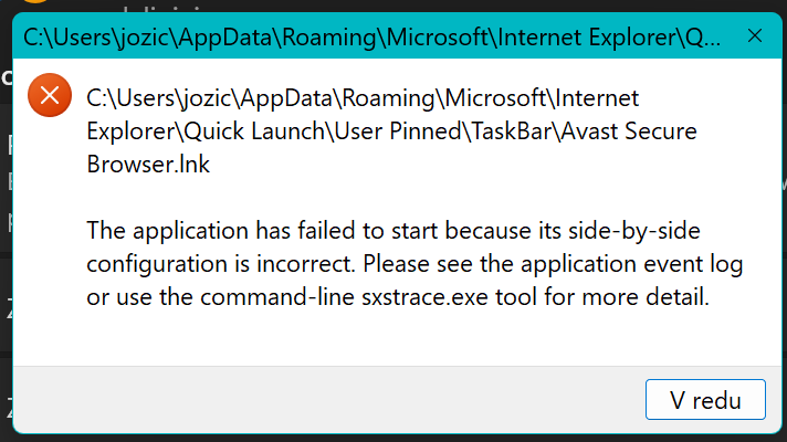 Hello, I am having a problem opening Avast browser on my laptop. When I click on the application, the following message appears. How can I fix the problem?