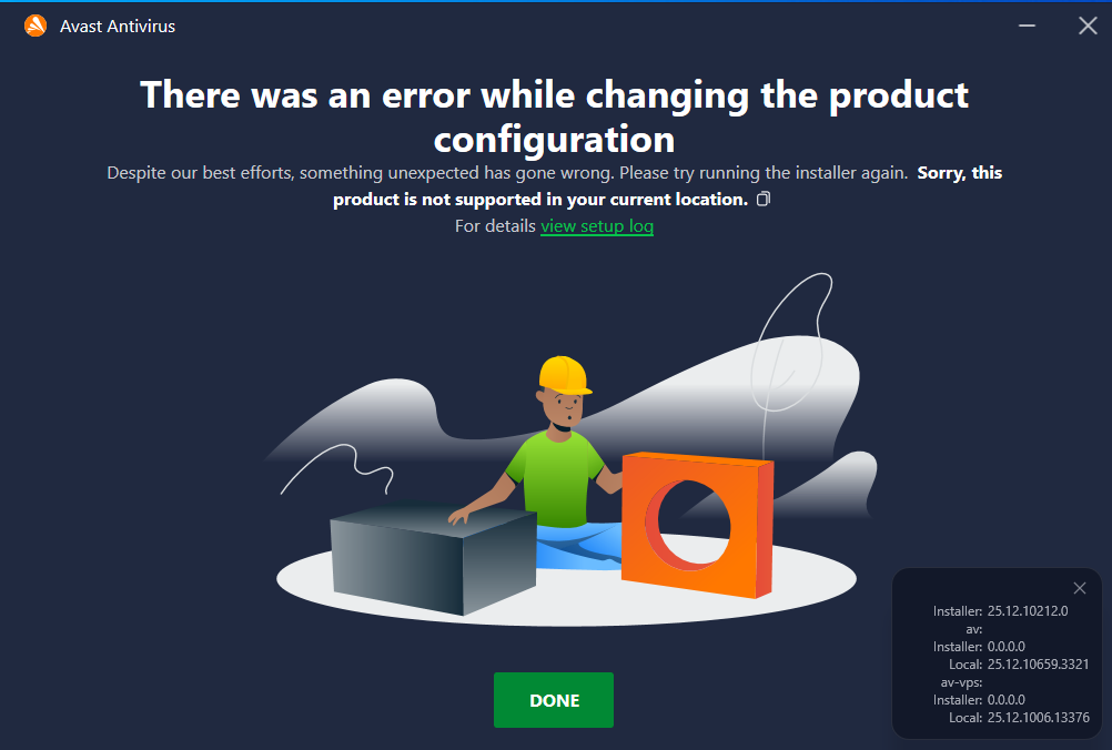 I encountered a weird issue while trying to install Avast Free Antivirus recently. During the installation process, I got two errors: