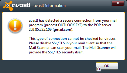There seriously needs to be more information in the pop-up message explaining HOW Avast will send it securely when Outlook is disabled.