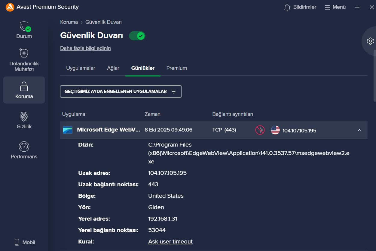 Avast is blocking Microsoft Edge IP’s. There some Microsoft IP detected and blocked are 150.171.73.11, 146.112.41.2. I have put a screenshot. Edge is in my trusted program list. I couldn’t find any solution abot this problem.