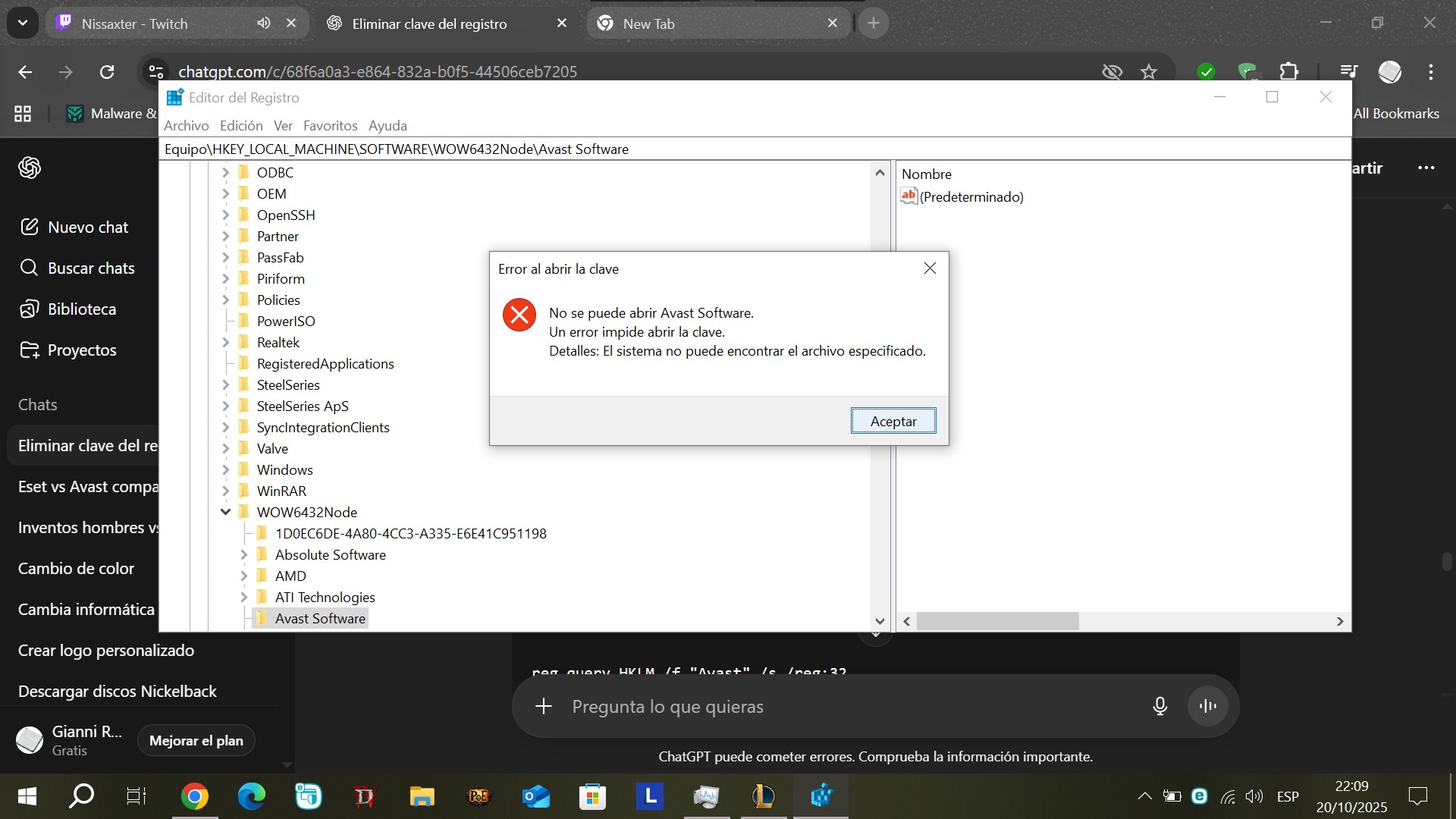 E\SOFTWARE\WOW6432Node\Avast CANT REMOVE PLEASE HELP