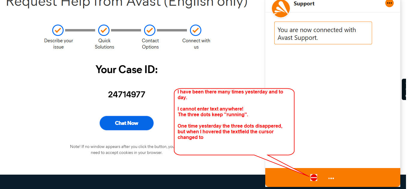 Thanx for answer. I have tried again and again! The three dots have been running as I’m making the screendump, and writing this.