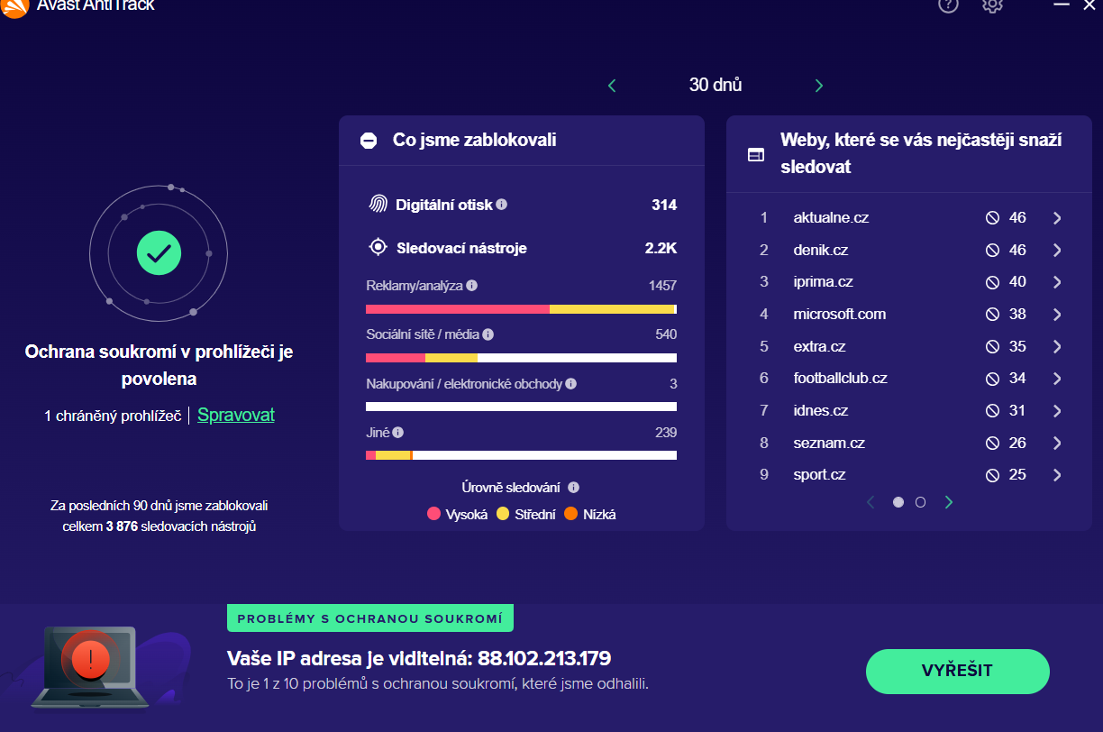 Avast AntiTrack jsem zakoupil za 1890 Kč s platností na 2 roky. Po úhradě mi přišel mail na milan.houska.st@seznam.cz s odkazem na stažení software. Stáhl jsem si program do adresáře stažené soubory a snažil se postupovat dle pokynů. Dvakrát klikl na software, ale neobjevila se mi stránka s možností kliknout na “již zakoupeno”, ale stánka běžné odpovědi systému s “výhružkami”. Když kliknu na řešení, nabídne mi systém zakoupení software znovu.