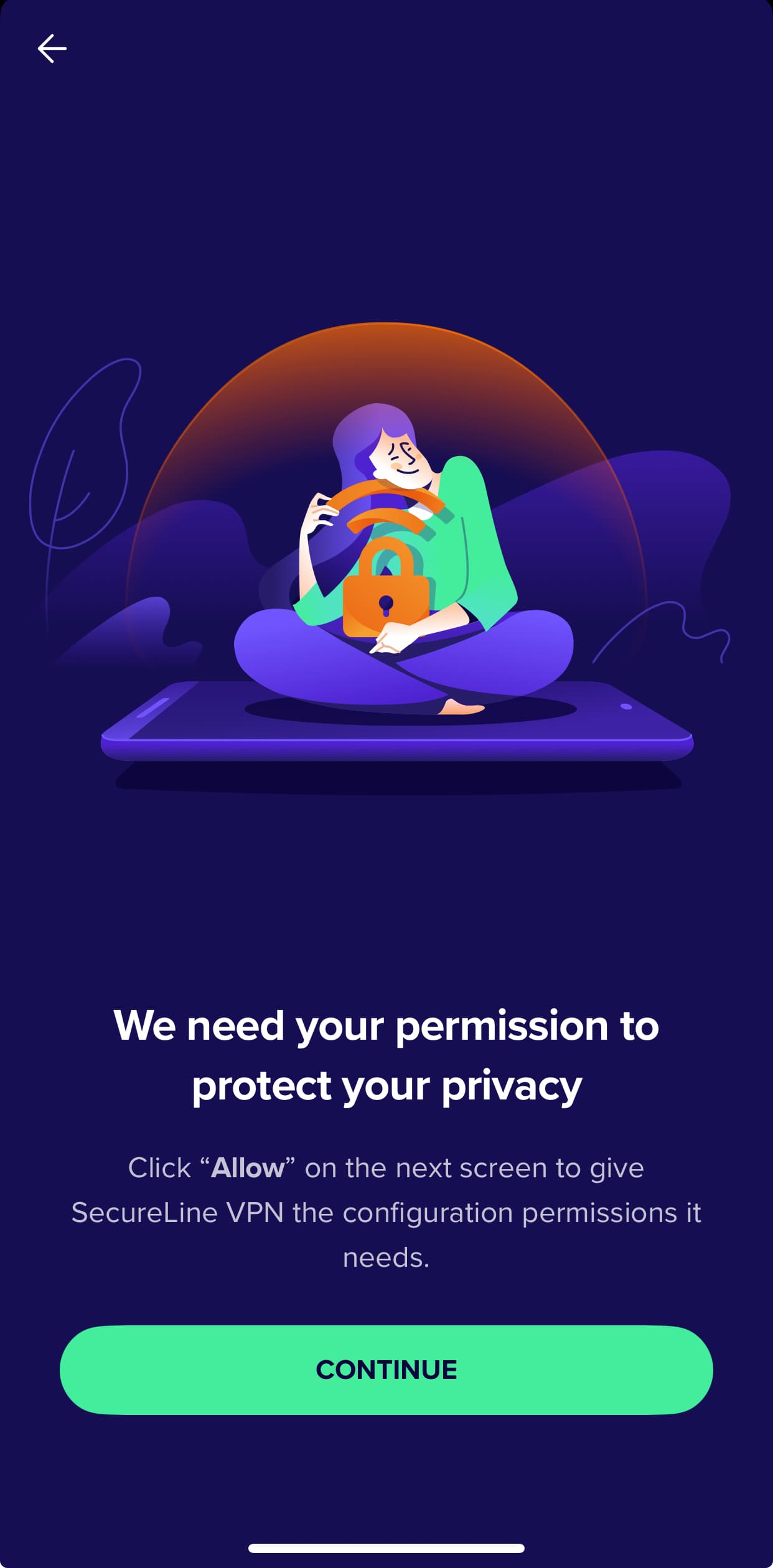 My secure line vpn won’t let me proceed to configuration permission