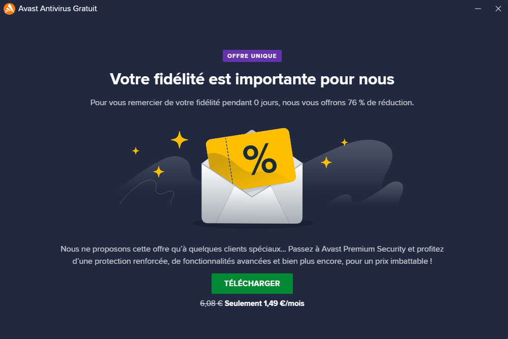 Hi, this is my very first post. Well, yesterday my antivirus, which is the free version, asked me to reactivate the free version, but when I try to reactivate it, this unique offer appears.