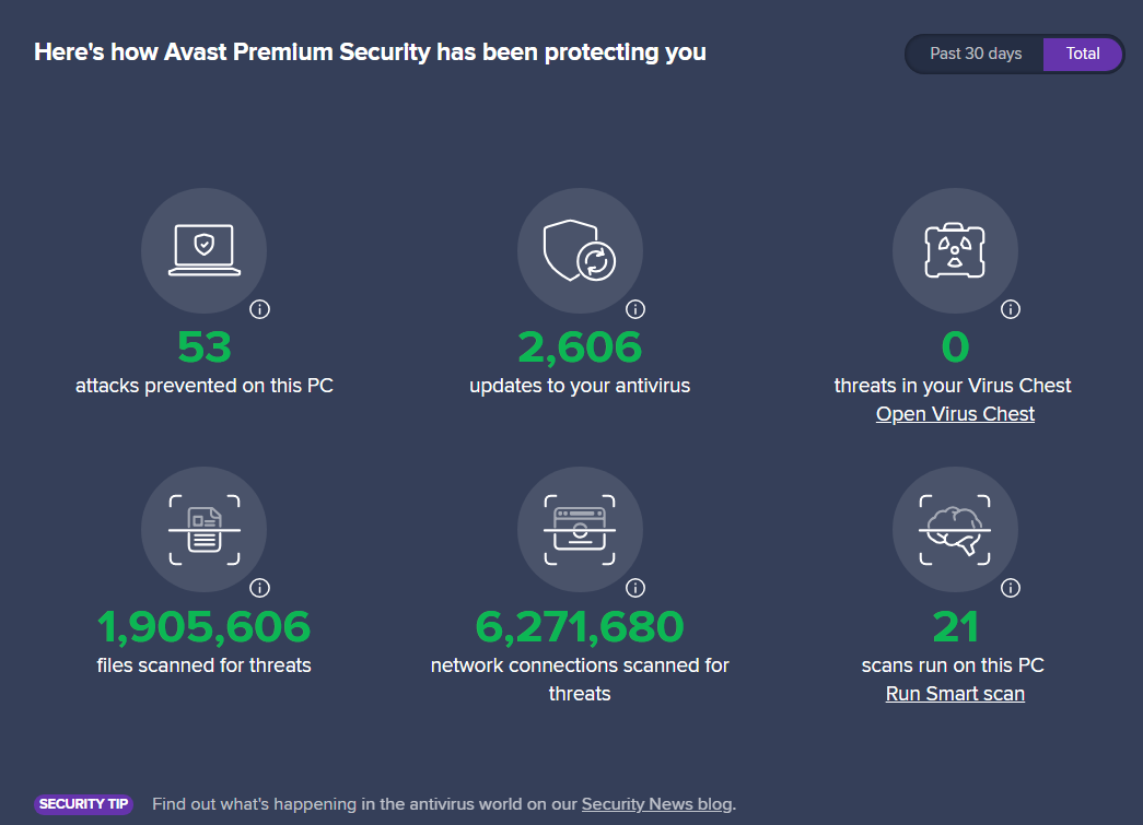 Personally, a long time ago when the Statistics were previously in place, I rarely even looked at them, mainly because the data is historic, it has already happened. I don’t really need avast to tell me how many attacks it has prevented, that is why I have it installed and if serious, surely it would have alerted.