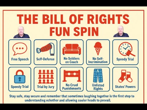 Discover a lighthearted twist on America’s most important freedoms. This playful take on the Bill of Rights blends history, humor, and clever visuals to make you smile while you learn.