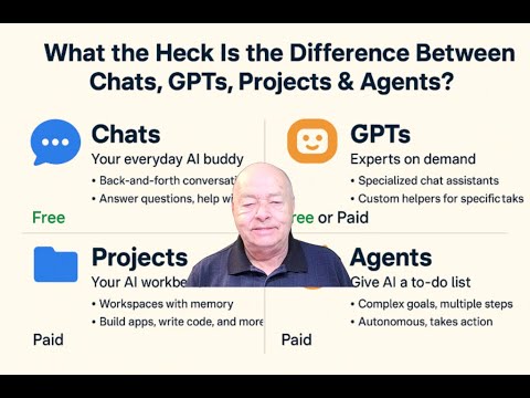 Feeling overwhelmed by all the new options in ChatGPT—Chats, GPTs, Projects, and Agents? You’re not alone. This video breaks it all down in simple, no-nonsense language anyone can understand. Whether you’re a curious beginner or a seasoned user wondering what’s actually worth paying for, you’ll walk away knowing exactly what each feature does, what’s free, and what’s not—without needing a translator or a tech degree. Curious yet? You should be.