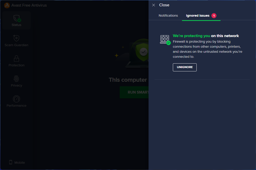 When set to “untrusted,” the notification simply informs you that it is protecting you from connections from other devices on your network.